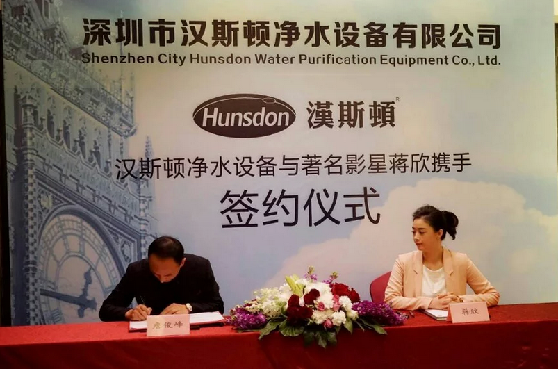 2016年3月8日,蔣欣正式與漢斯頓簽約,成為知名凈水器品牌漢斯頓的形象代言人。在簽約會議上,蔣欣出言表示,答應成為漢斯頓的代言,她不僅僅要宣傳的是這個企業的產品和品牌,更是要借住這個企業,傳遞愛心,關注社會。蔣欣一直以來,都是一個非常有愛心的藝人。漢斯頓在這一點,與蔣欣非常的相似,所以一拍即合,攜手共進。