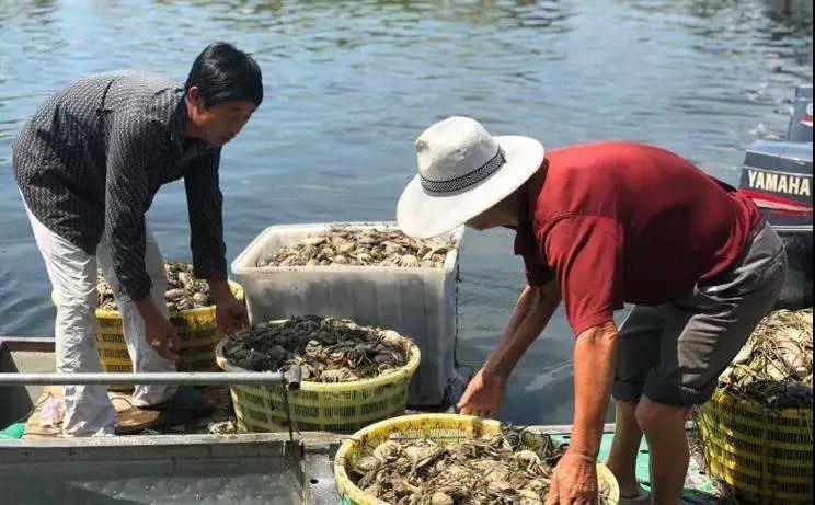 全村一萬三千畝蟹塘里的螃蟹、魚蝦